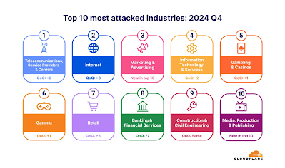 Segundo a Cloudflare, os ataques distribuídos de negação de serviço (DDoS) cresceram em frequência e volume durante o ano passado, com o número de ataques HTTP DDoS aumentando constantemente até ultrapassar os ataques de Camada 3 e Camada 4 no quarto trimestre.  Desde o terceiro trimestre de 2024 foi identificado um aumento nos ataques DDoS hipervolumétricos na camada de rede.
